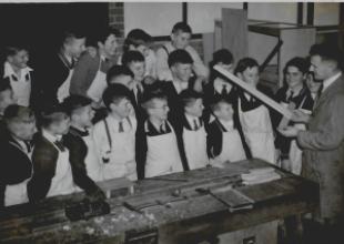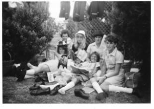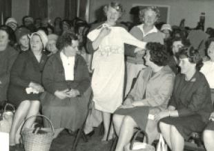 Mrs Taylor holding dress, Mrs Kerr holding the sleeve and Barbara Coyle centre right