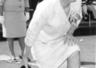 Doreen Radford bowling and Dorothy Devine at Opening of Bowling Season - mid 1960s