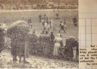 Yallourn No 1 Oval…it was dreadful day with a deluge and heavy, muddy conditions. St Kilda defeated Footscray by 15 points.