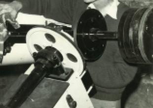 Doug Manley of Moe cleaning the giant balancing weights at the Yallourn Observatory on Coach Rd