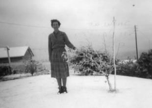 Joan Pringle in the snow at 11 Driffield Road - early 1960s...Ian Pringle