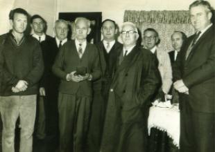 L-R Robert Smith, Bob Docking, John Whitmore, ? , Arthur Nicholas, Russell King, Geoff Unwin