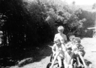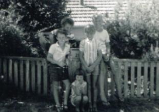 In the backyard of 21 Tanjil Crescent: Back: Ronald Gloss Middle: Martin De Vries, Martin Francis Front: Michele De Vries, Ernie De Vries