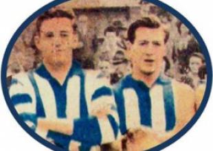 Yallourn's Vic Lawrence and Laurie Shipp at North Melbourne. Vic later coached YFC in 1958 and 1959
