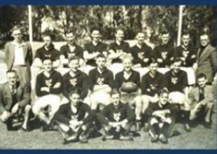 Standing: Keith Walker (Goal Umpire), Tom Oswald, Syd Collins, Gerald Knight, Milton Kingsley, John Kirwood, Jim Watt, Bill White, Bob Oswald (Treasurer) Middle Row: Claude Hayes (Coach), G Christie, Keith Shepherd, Claude Whitbourne (Bub), Jim Shepherd, John Boag, Keith Squires, Jack Huxtable (Secretary) Front Row: Bill Lawrey, Ken Passey, Kevin Green