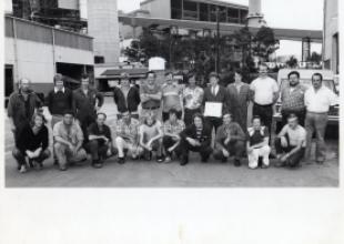 Back Row: Angie Bau, Colin Veal, Eugene Nicodemsky, ? , Dave , Peter Charleston, Eric Jensen ,Ian Moulden, ? , Krupa, Jingles Jackiew, ? , ? , ? , Barry Fussel, ? 2nd Back Row: Dave Mitchell, Ian Westfall, Neville Henshaw, ? , Ken Handley, Ian Gibson, ? , Brian Andrews, Nick Spackman, Graham Strang, Alan Dare. 3rd Back Row: Liam Griffin, Mick Hrynysn, Colin Foggo, Alf ?, Anton Misurka, Joe Spiteri, ? Bussell, Roger Brister, Rob Kypriotis, Tom Patterson, Ray Allen, Graham Bounds, John Williams.