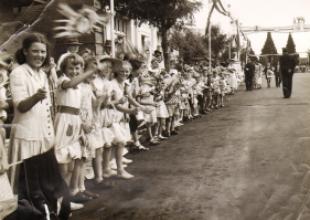 Spectators at opening of Railway Avenue buildings of Yallourn Technical School 1936