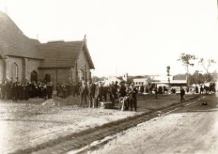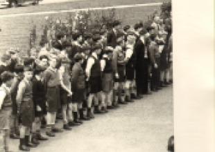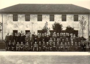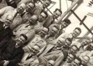 Back Row: Laurie Baker, Jim Irving, ?, ?, ?, ? , Eric Sutton, Phil Evans, Neil Robertson, Bill Smith, Jack Spaulding, ?, ?, ? Brian Langdon 3rd Row: "Mac" Mclaren, Bill Laurie, Arthur Brogan(partially hidden), Doug Andrews, Frank Haywood, ?, Bill Allen, Frank White,?. 2nd Row: ?, ?, Charlie Christopher(white hair), ?, ?, ?,?, ?, Colin McLean, Reg Stephens, Bert Milne, Gerald Knight, ?, Brian Clarke, ?, ?. Sitting: Roy Smith, Jim Watkinson (Snr), ?, ?, Frank Kirby, Mr(?) Whitehouse, Vic Greer, Joe Davis.