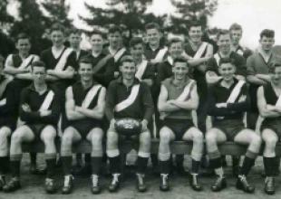 Standing: ? , John Hutchinson, Noel Rodda, ? , Ross Mitchell, Bob O'Hara, John Sundquist, Peter Wallace, Bill Carrie, Ian Thompson, Ron Castanelli, Ian White, ? Sitting: Brian Edmondson, Alan Marr, Peter Archbold, Barry Archbold, Kenn Rogers, Ken Greenway, ?