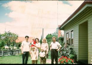 L-R top to bottom. Dad (John Anthony), Cathy, Nana Hopkins, Mum (Joyce Anthony pregnant with James born at Yallourn hospital), Grampy Hopkins, Linda and John. This is outside our house at 12 Ridgeway East Yallourn 1967. One of Nana's and Grampy's visits. .