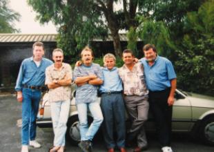 After the 2002 Reunion at Woorabinda: L-R: Ian Pringle, Jeff Browitt, Stephen Heddles, John Udowenko, Ross Smith, Lachlan McPherson