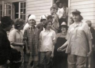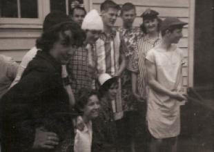 1962 Staff vs Prefects Softball Game - end of year Marie Gorman, Margaret Waterson, Iris Ortolja, Alice Van Staveren, Susan Wallace and Janice Ipsen. Boys at the back - Peter Gray, Colin Johnston, John McLaren, Tony Hoffman, Stefan Tomasz