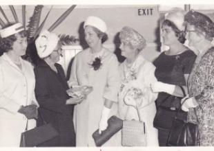 L- R: Mrs Frank Burgon, ?, Mrs Vi Mc Coll (Winner), ?, Mrs Marj Brogan, ?