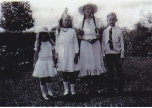Standing: Frank Barton (with Mary Wharton), Catherine Barton, Bill Wharton Kneeling: Les Barton. Thelma Barton, Marj Barton The picture as talen by Leila Wharton (nee Barton)