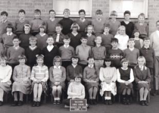 Back Row: Chris McMicken, Robert McKinna, ?, Ken Tate, John Watkinson, Rodney Barnett, Mark Hawken, Colin Ure, Alister Thorpe, Ian Griffiths 2nd Back: Jan Daddo, Jenny Crookes, Jenny Watkinson, Wendy Wright, Sue Bussell, Susan Randall, Carol Fisher, Elaine Coad, Robyn Bailey Middle: Glen Setches, Clive Low, Greg Gray, Paul Steele, ?, Robert Garnett, ?, Richard Clark, Andrew McStay, Robert Crookston Front: ?, Annette Long, Jenny Green, Linda Gurney, Sandra Morris, Frances Miller, Jackie Eves, ?, Gillian Wood, Andrea Tilley Holding sign: Vicki Baxter Teacher: Graham Budd