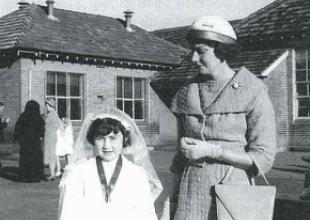 1962 - Anne McGoldrick with Gwenda Hill in front of St Therese's School