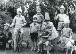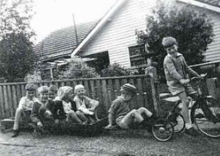 Prue, Mrs T Yeend, John & Dorothy McGoldrick holding Anne & Damien. In front Bernard & Jamie.